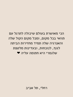 לפתח מודעות לגוף ולנשימה • לחיות בגוף בריא, גמיש, וחזק יותר • לשמר טווחי תנועה תקינים ובריאים • ליצור שרירים גם חזקים וגם ארוכים • להתהלך במהלך היום בתחושה נעימה • לדעת מה הגוף צריך ומה נכון לו • לחזק את מערכת החיסון • להפחית סטרס ולדעת להתמודד עם מצבי לחץ • לחוות תחושה של עלייה באיכות החיים • לחוות יותר רגעים של שקט פנימי וחיבור • ללמוד על עצמנו דרך הגוף • לקבל ביטחון לבחור בצורה מדוייקת • ללמוד קבלה עצמית • והרבה מעבר...